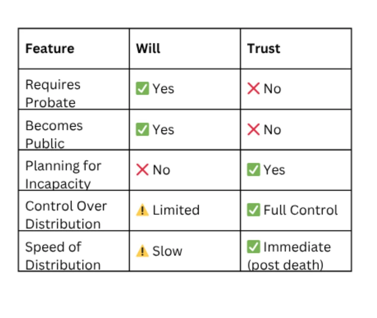When planning your estate, two tools often come to mind: wills and trusts. While both are legally recognized means of passing on your assets, they operate very differently, especially when it comes to cost, privacy, flexibility, and control.